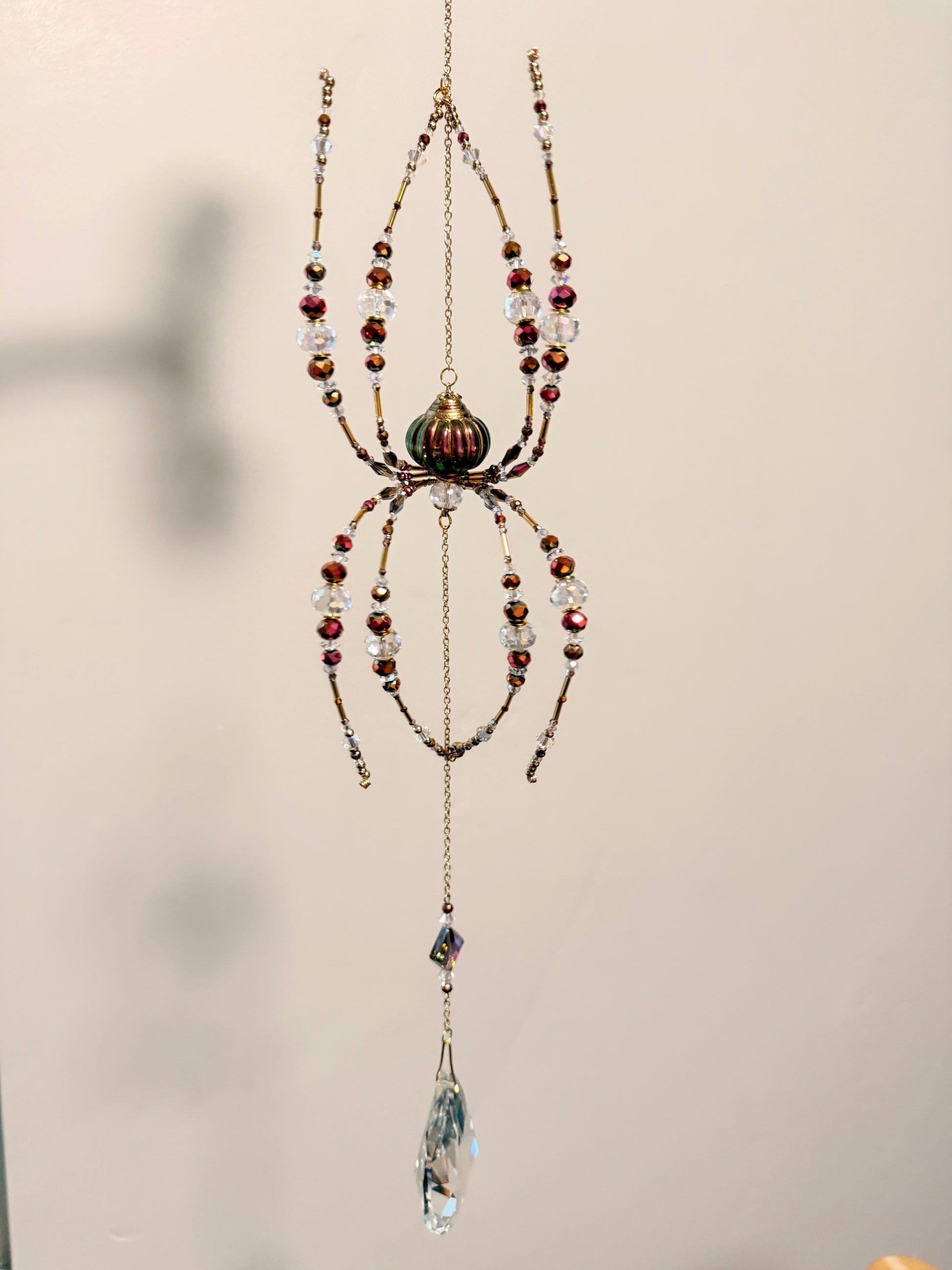 Autumn shimmers in warm tones of amber, rose gold, and crystal - like sunlight through fall leaves. Her pumpkin-hued body and golden details give a cozy, seasonal glow, while the hanging crystal below catches light beautifully. A perfect piece to welcome the warmth and sparkle of autumn.