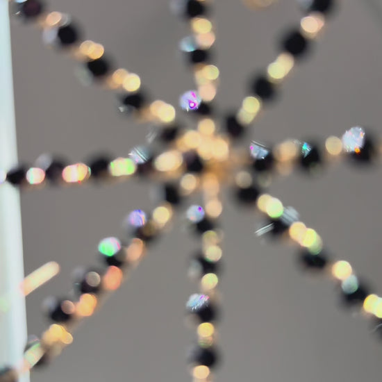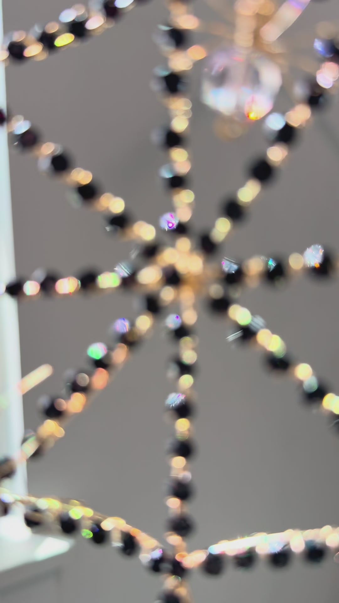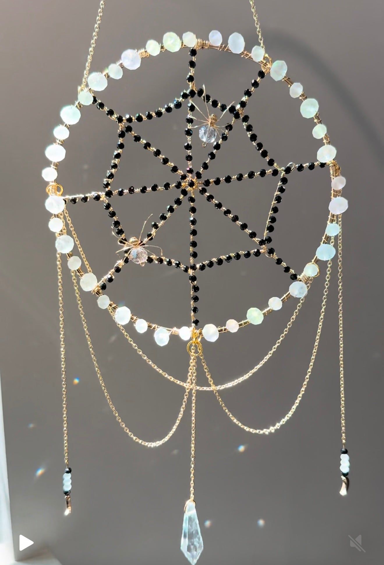 This delicately woven spiderweb suncatcher is a tribute to the quiet beauty of nature’s patterns. Each bead is carefully placed by hand, creating an intricate web that sparkles in the light like morning dew in a forest clearing.